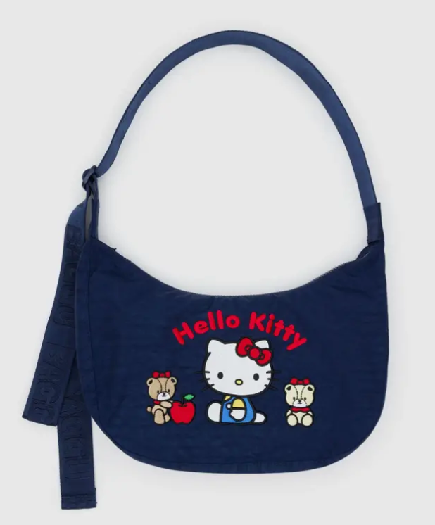 Medium Nylon Crescent Bag - Embroidered Hello Kitty & Teddy