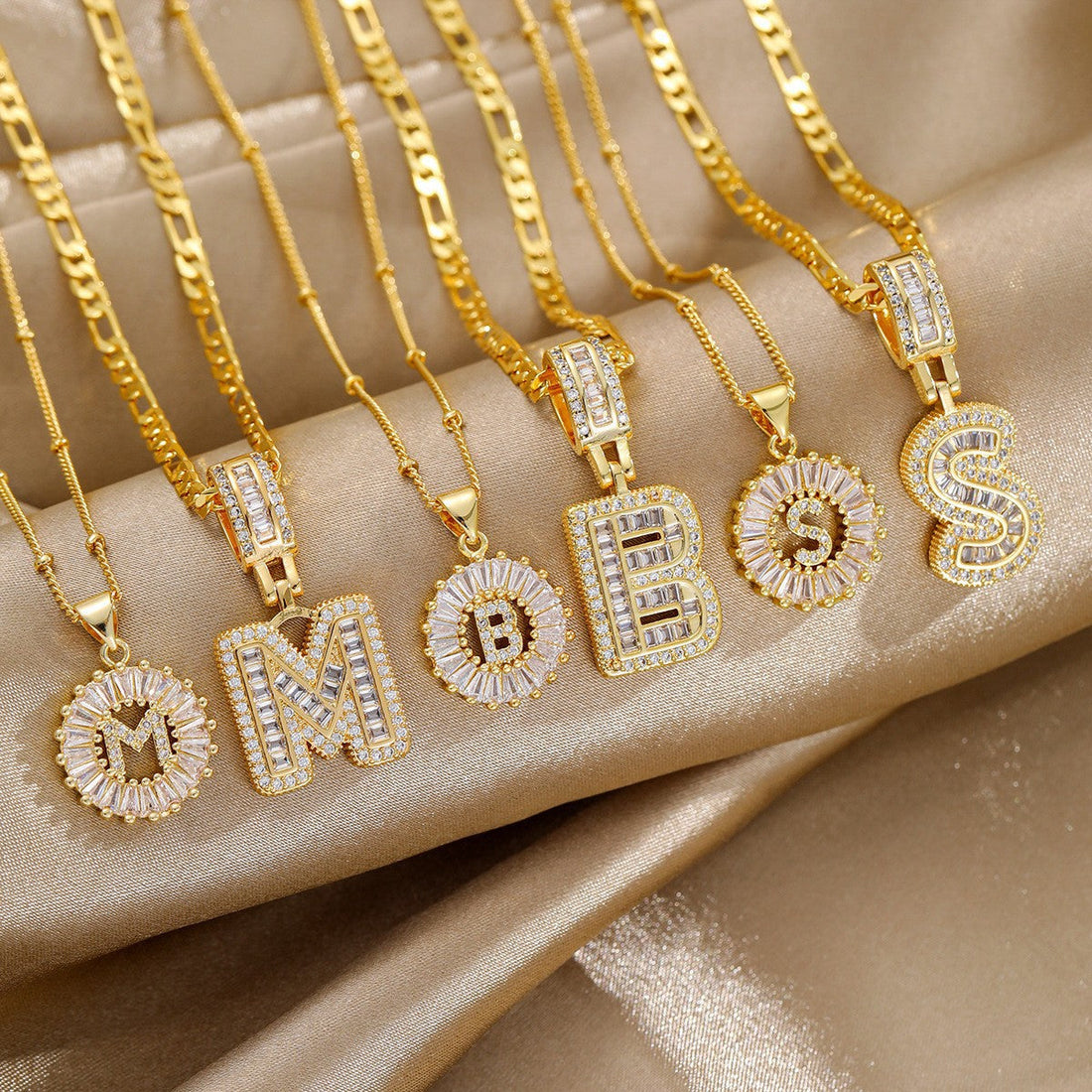 The AuraZircon Initial Necklace - Zircon Initial Pendant, Figaro Chain,+ 1+1 FREE