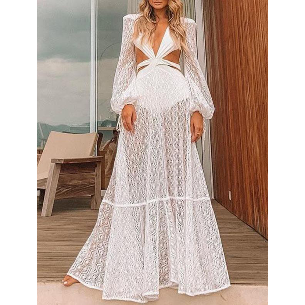 White Fashion Long Sleeves Fairy Long Maxi Dresses