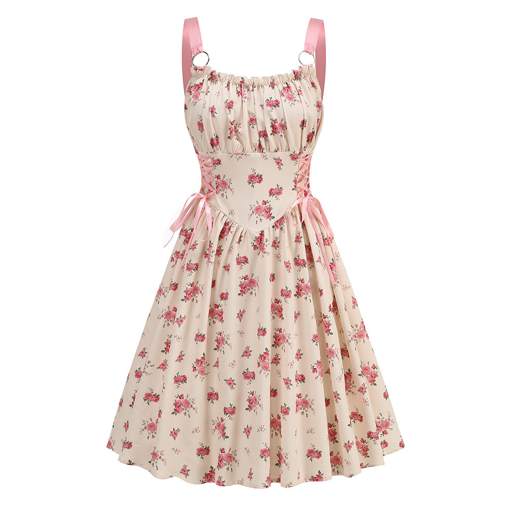 legant Floral Print O-Ring Strap Slimming Party Dress