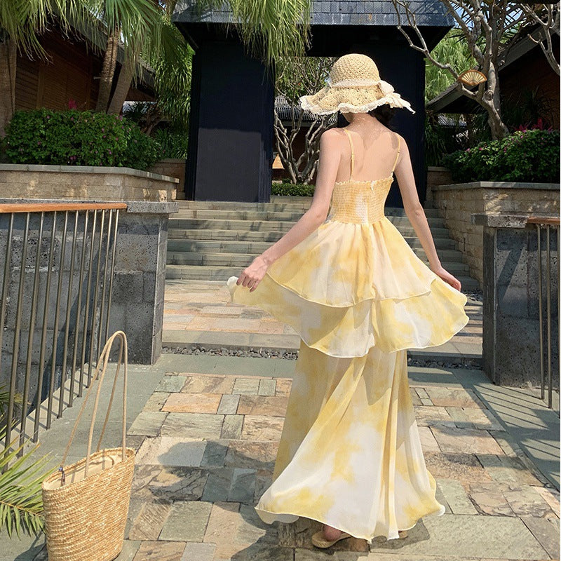 Women's Summer Beach Dress – Sleeveless Tiered Maxi Sundress for Vacation