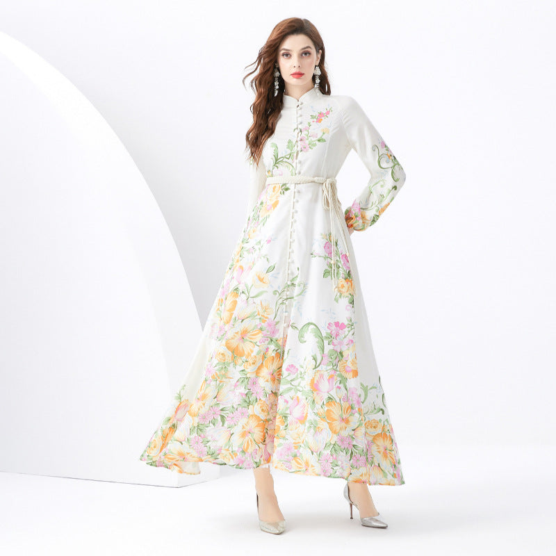 Vintage Stand Collar Elegant Long Dresses