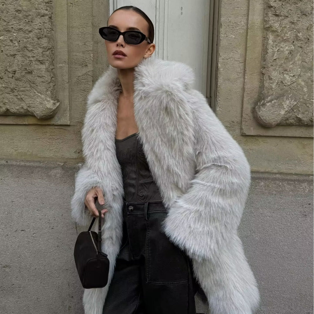 Faux Fur Coat – Trendy Streetwear Winter Jacket with Thick Plush Collar
