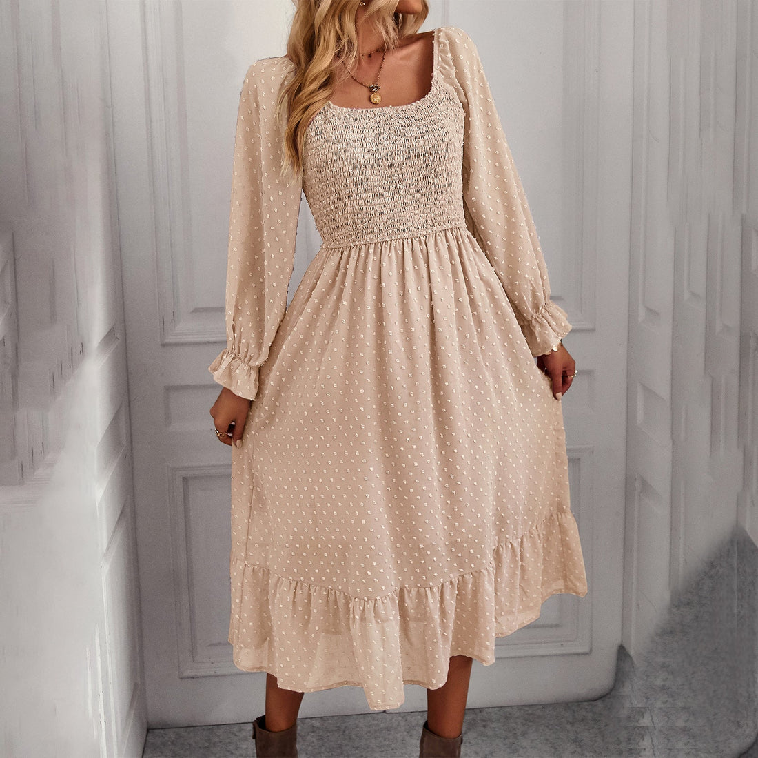 Elegant Square Neckline Summer Midi Dresses