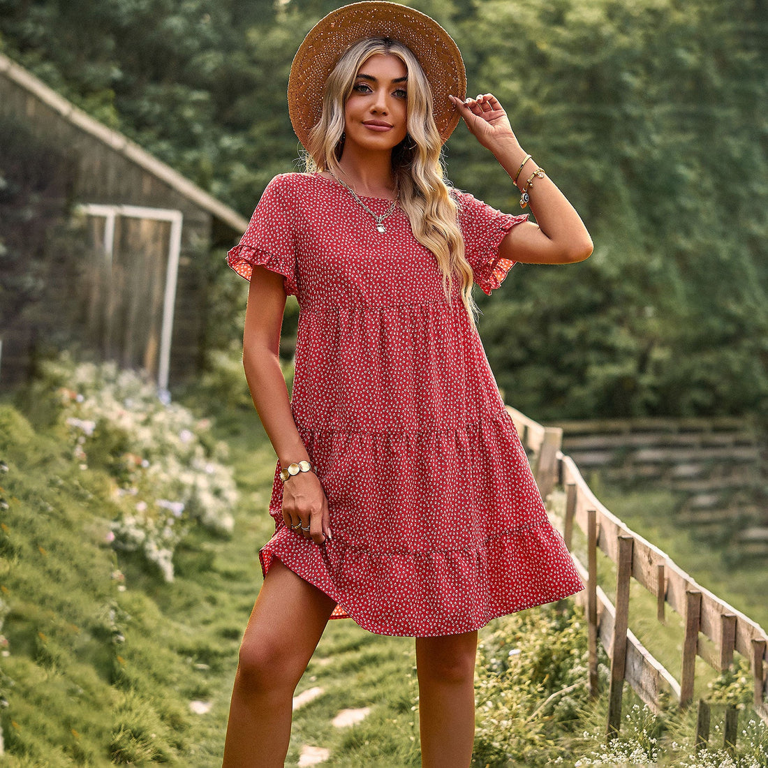 Casual V Neck Floral Print Ruffled Short Daily Dresses