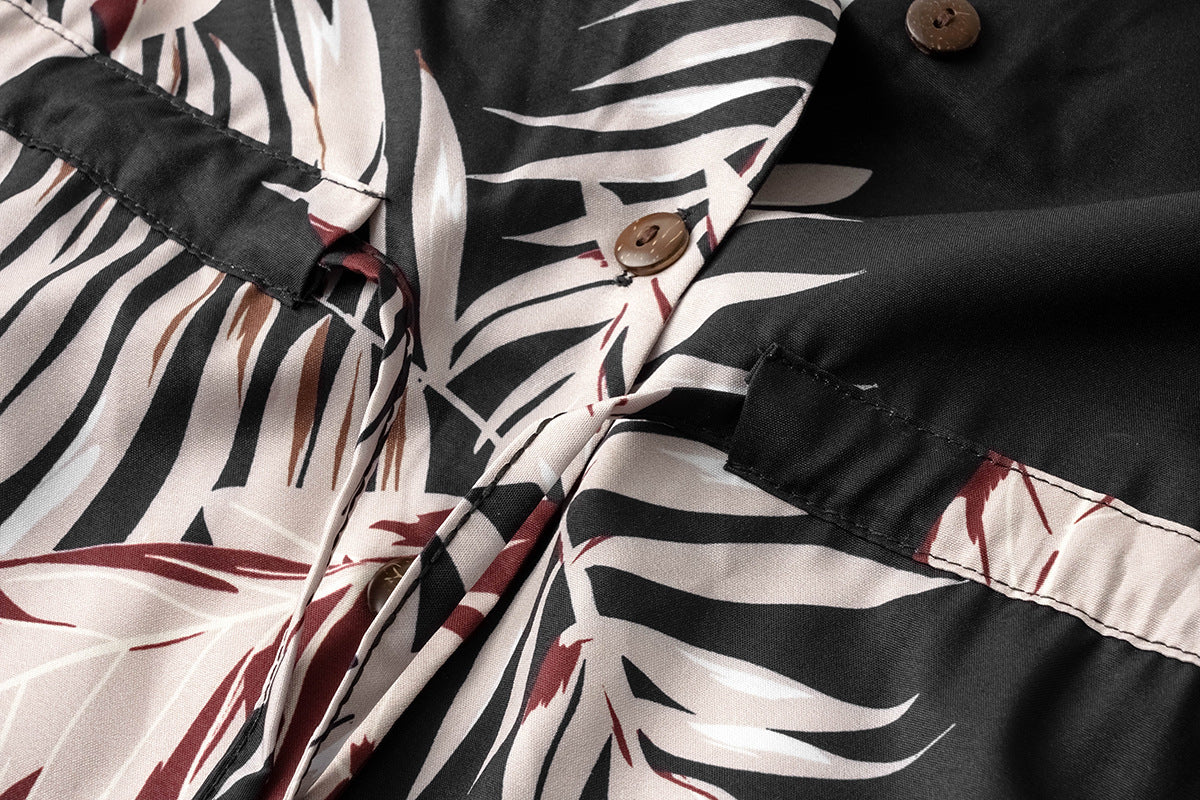 Women's Summer Leaf Print Short Sleeve Short Mini Dress