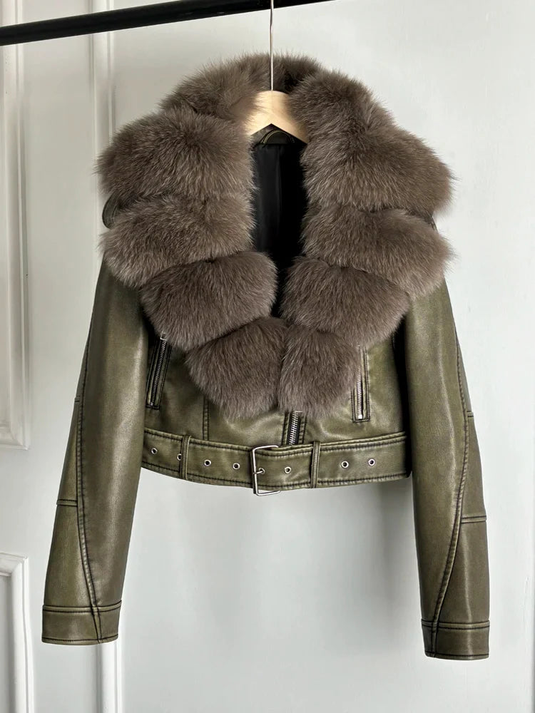Women PU Faxur Fur Winter Jacket Outerwear
