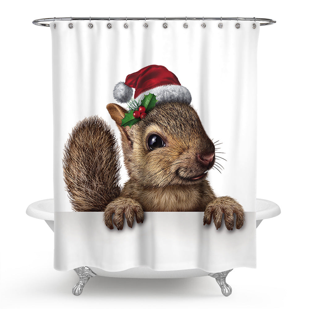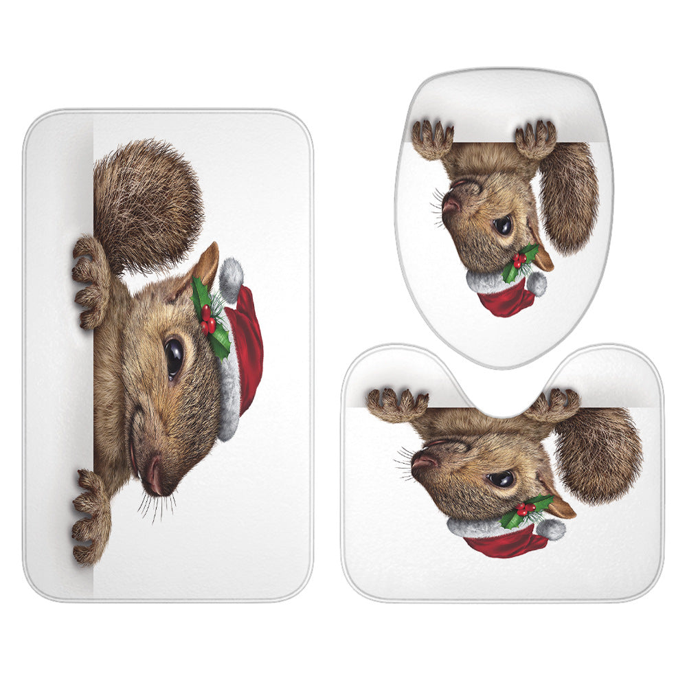 3D Animal Print Shower Curtain Bathroom Rug Set Bath Mat Non-Slip Toilet Lid Cover