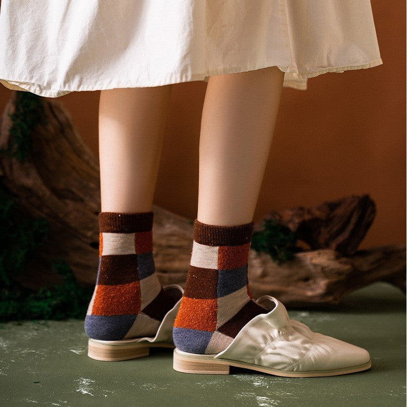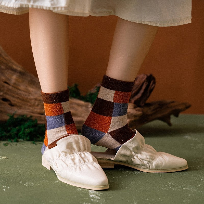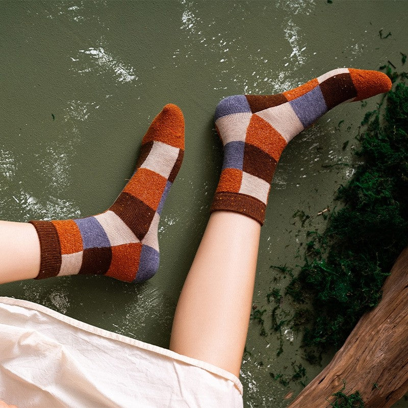 6 Pairs Mixed Color Plaid Winter Wool Adults Socks