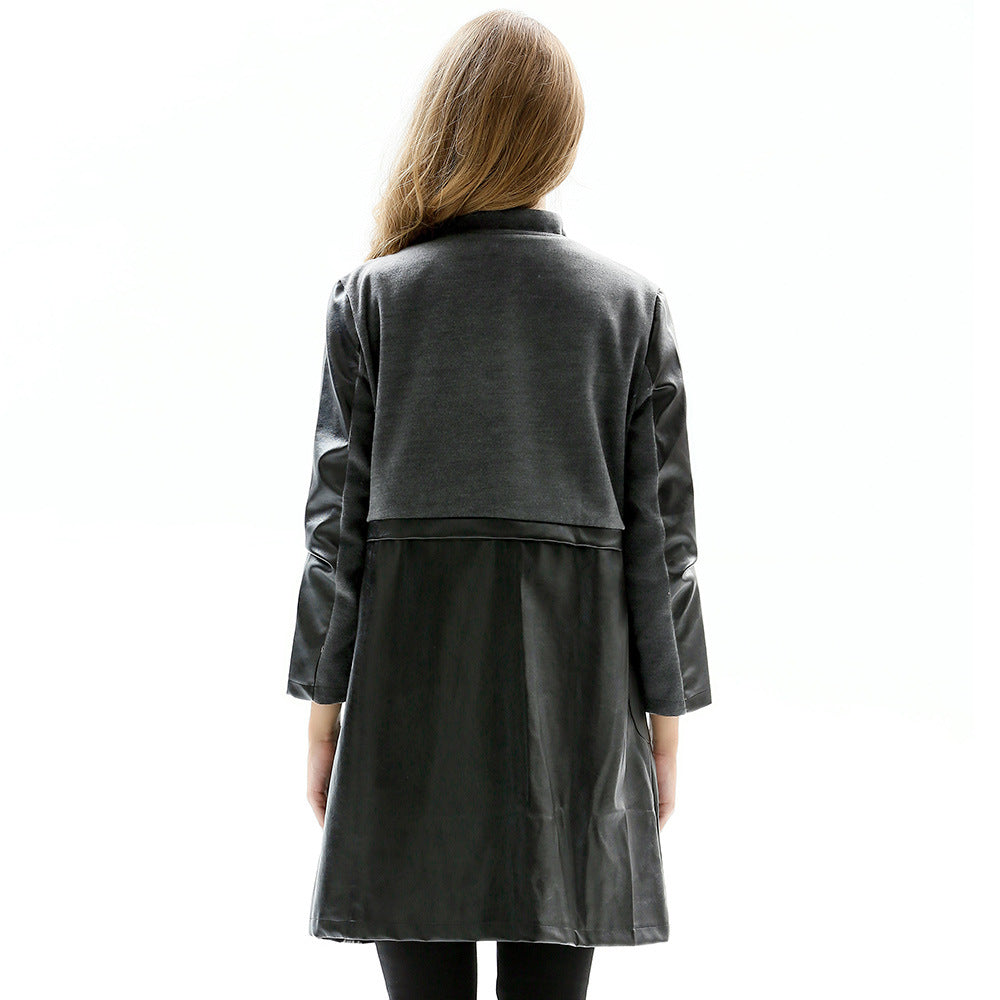 Women's Plus-Size Wool Blend Longline PU Leather Jacket