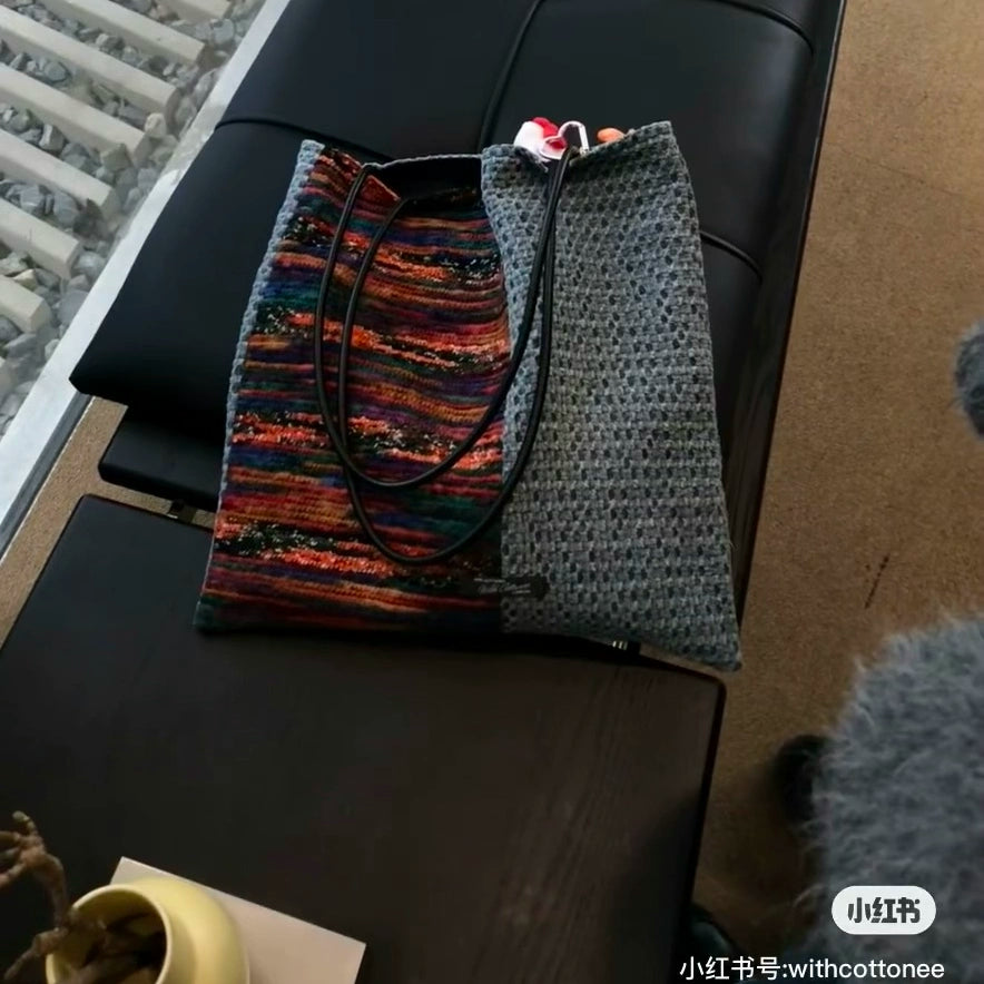 Carry your adventures in style with our uniquely designed canvas tote. Featuring a deep navy base contrasted with vibrant, artistic color-block panels, this spacious bag is the perfect blend of bohemian flair and practical function. Stand out from the crowd with this statement piece that's ideal for travel, market days, or everyday use.