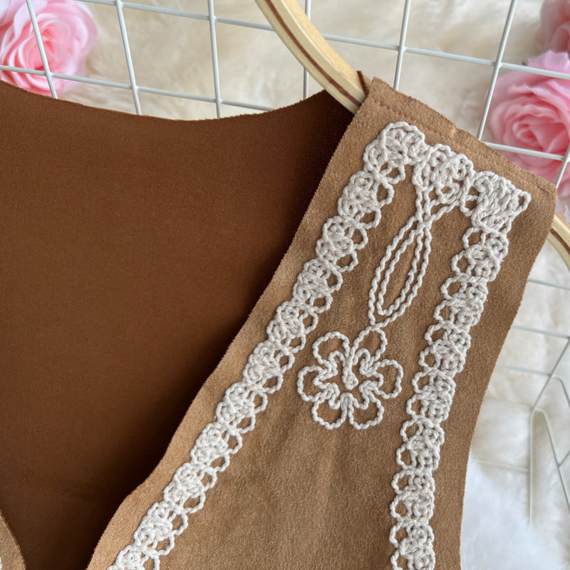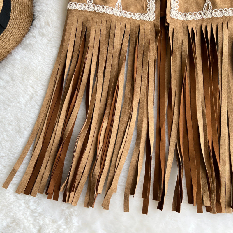 Bohemian Vintage Vest – Embroidered Floral Long Fringe Open Front Cardigan
