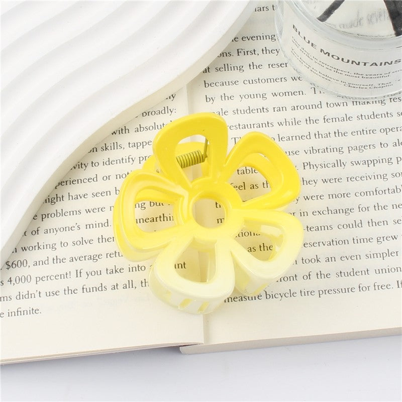 1.These claw clips feature a unique. vibrant candy color gradient design. with bright and cheerful hues of pink. blue. yellow. and green making up the petals of the flowers.