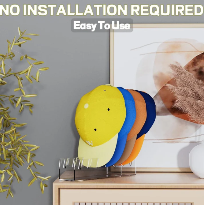 MODERN SPACE-SAVING ELEGANCE The sleek, minimalist acrylic frame disappears behind your hats, creating a "floating" aesthetic that upgrades any room from messy to professional.