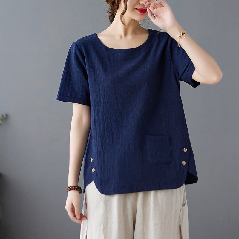 Embrace effortless summer style with our Vintage Stripe Cotton Linen T-Shirt.