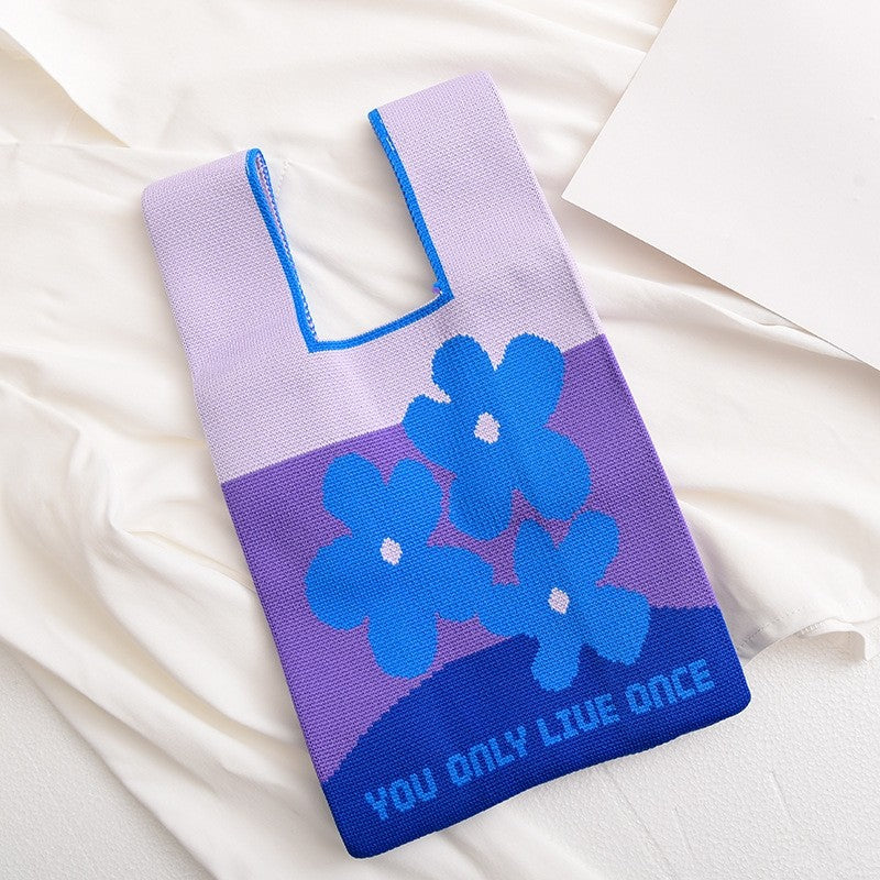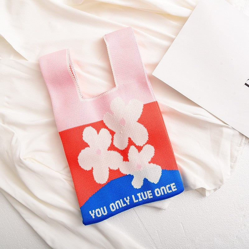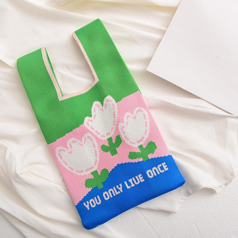 Contrast Color Cute Knitted Handbag Reusable Bag