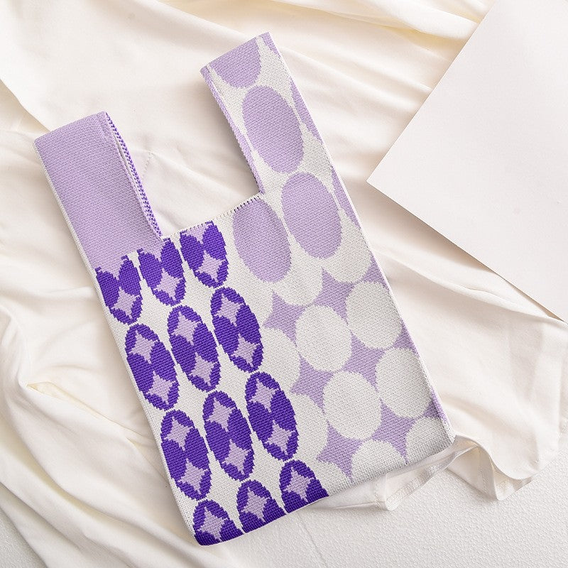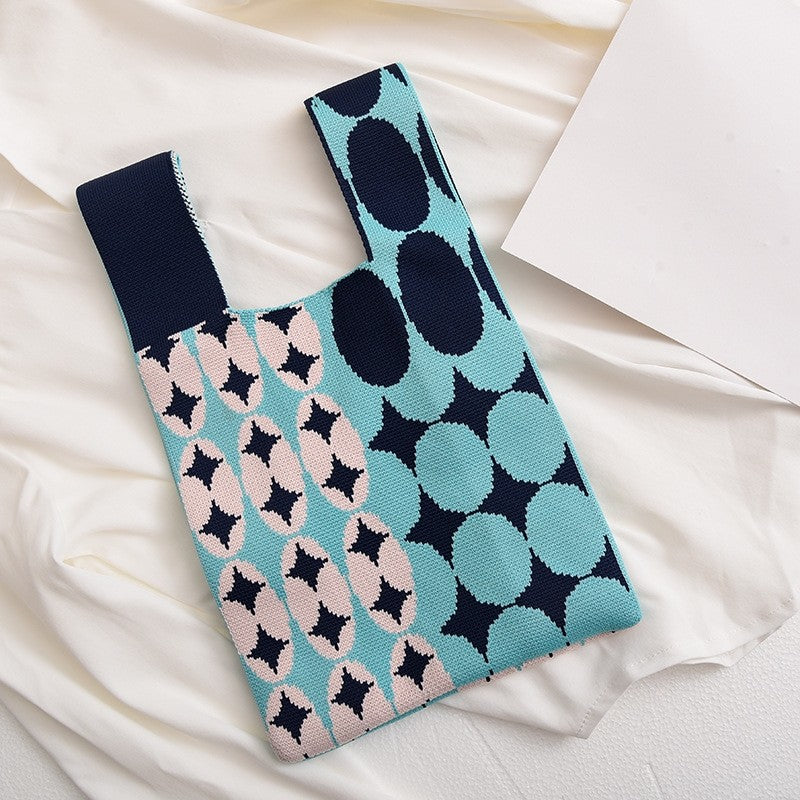 5. The Contrast Color Knitted Handbag Reusable Bag has a woven pattern. making it unique and fashionable while also being reusable and eco-friendly.