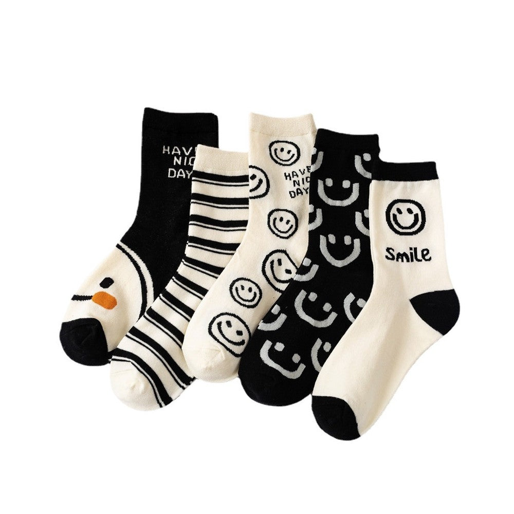 Cute Cartoon Smile Face Medium Tube Cotton Socks