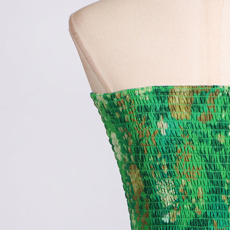 Designed Green Elegant Off-Shoulder Strapless Chiffon Maxi Dress