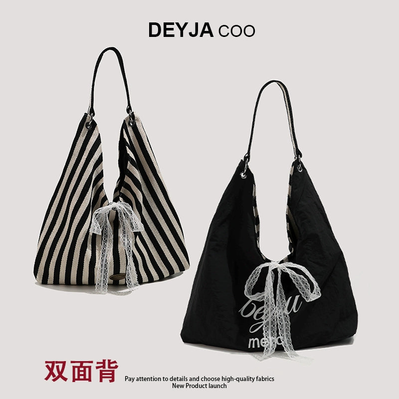 REVERSIBLE & TWO-IN-ONE: Features two distinct styles in a single bag. One side showcases a classic striped pattern, while the reverse offers a minimalist design with stylish letter print. Perfect for matching any outfit or mood.