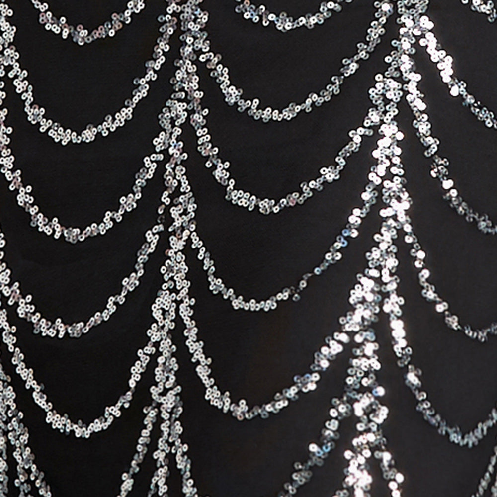 Design: Sparkling sequin embellishments, long sleeves, and a modest round neckline.