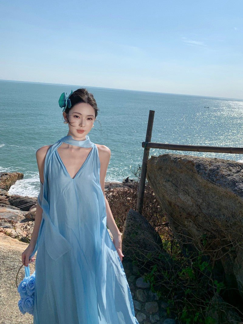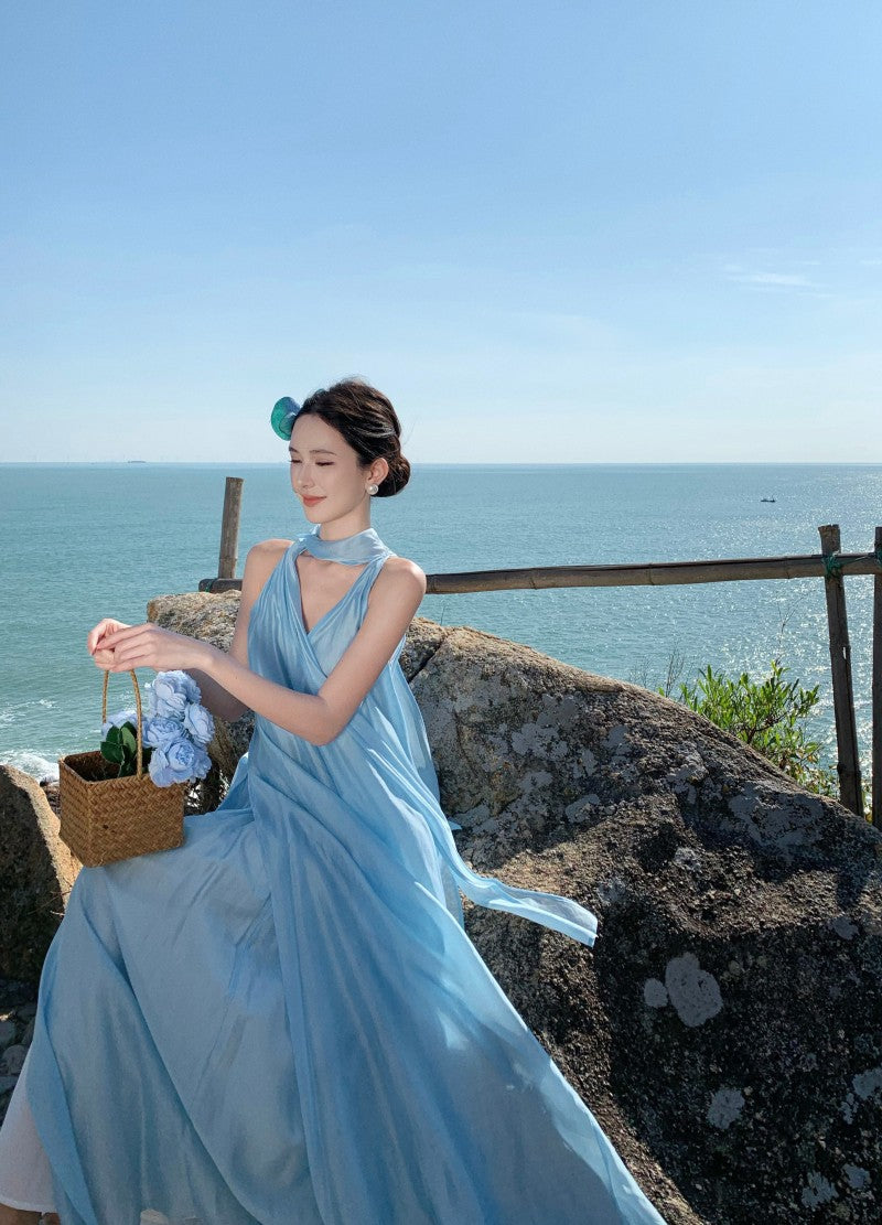 Ethereal Tie-Neck Maxi Dress – Flowy Goddess Silhouette with Elegant Sash Detail