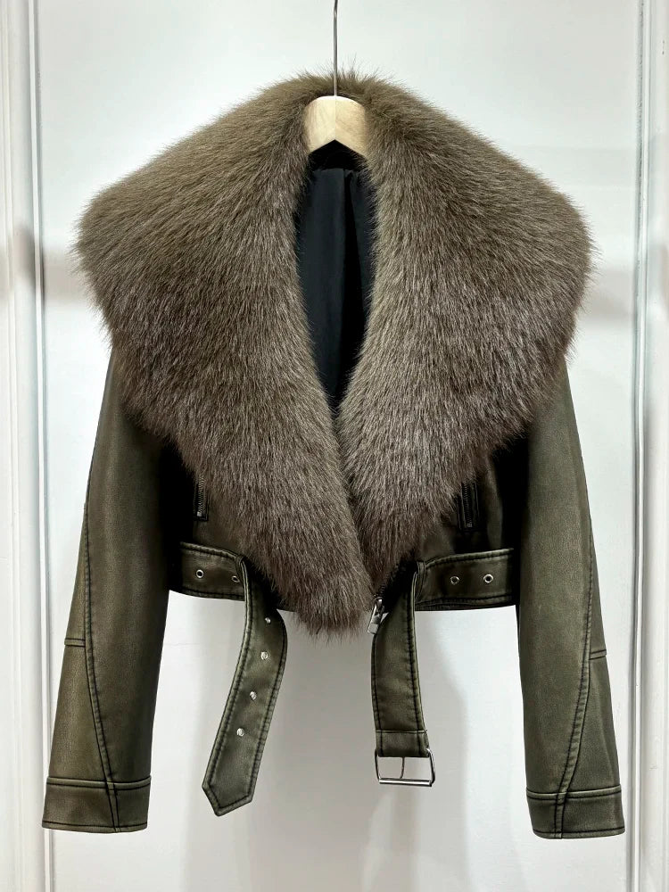 Fashion Faux Fur Collar Short Winter Warm Coat with Pockets