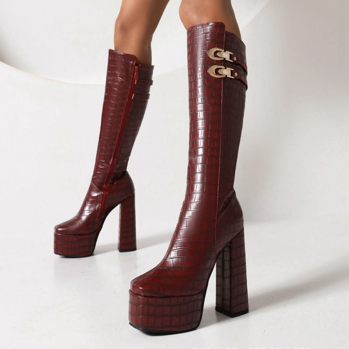 Fashion Women Chunky Heels Platform Knee High Boots