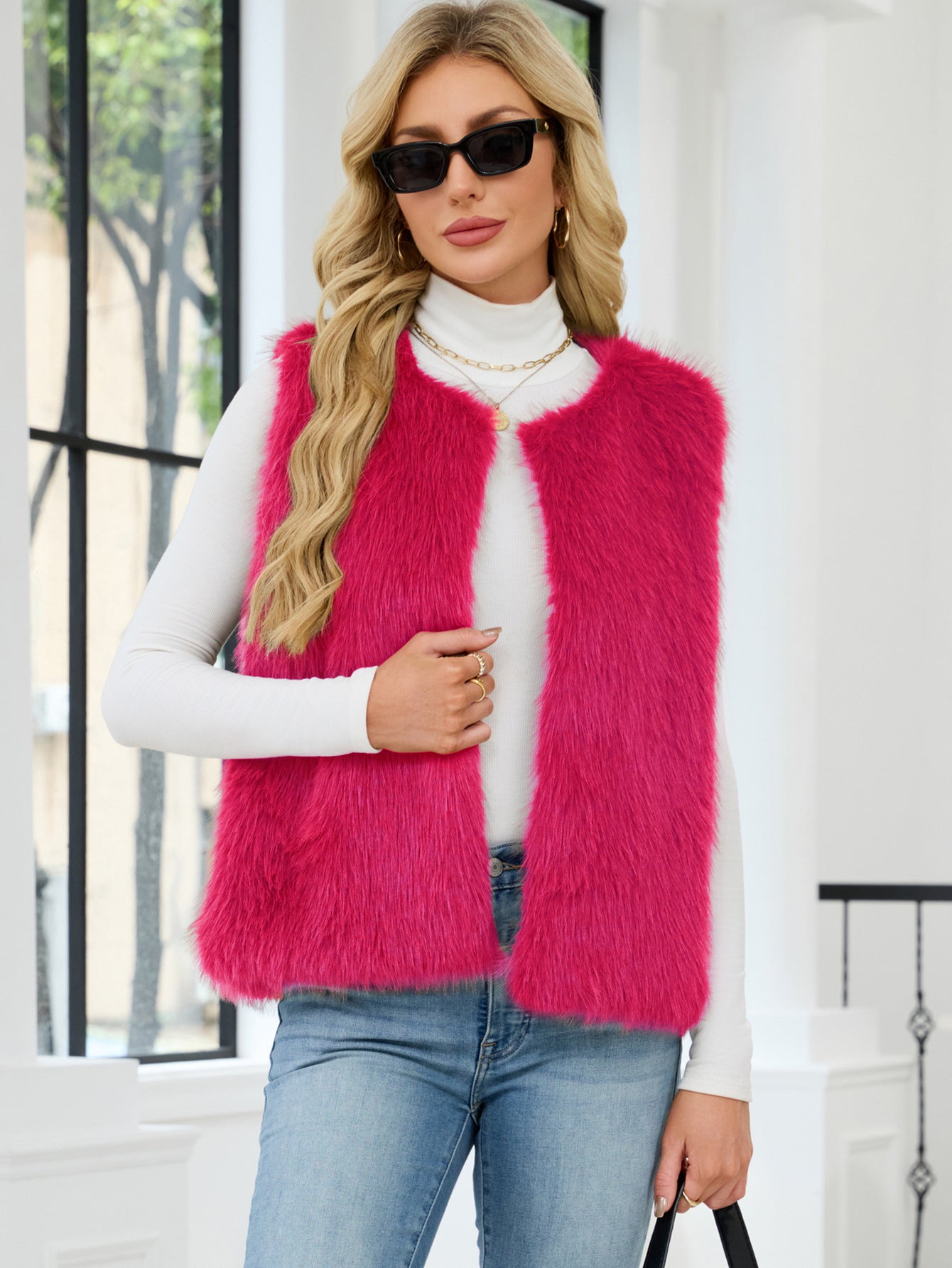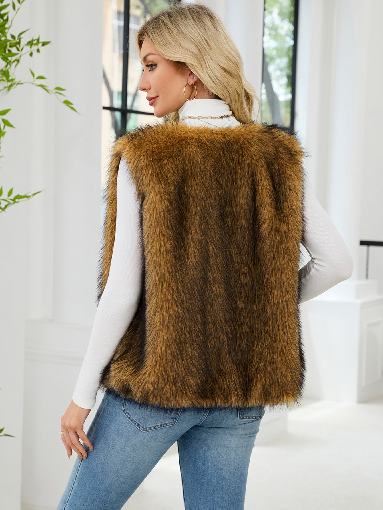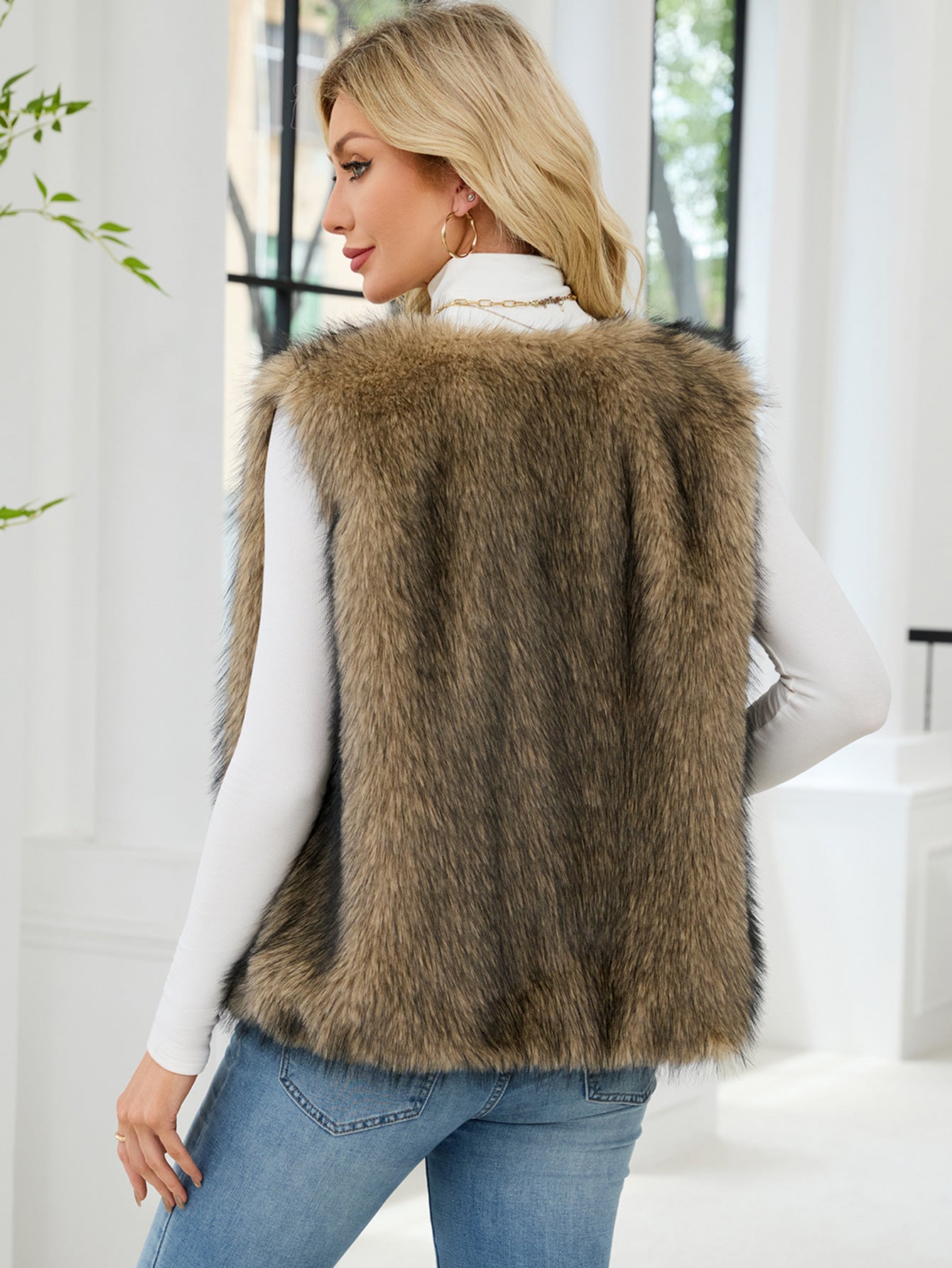 Elevate your wardrobe with our chic Faux Fur V-Neck Vest—a timeless sleeveless top designed for effortless style and versatility. Crafted from premium faux fur, this vest offers a luxurious feel without compromising on ethics. The flattering V-neckline adds a touch of sophistication, making it perfect for layering over blouses, dresses, or long-sleeve tops. Whether dressed up for a night out or paired casually with jeans, this vest is your go-to piece for creating polished, fashion-forward looks.