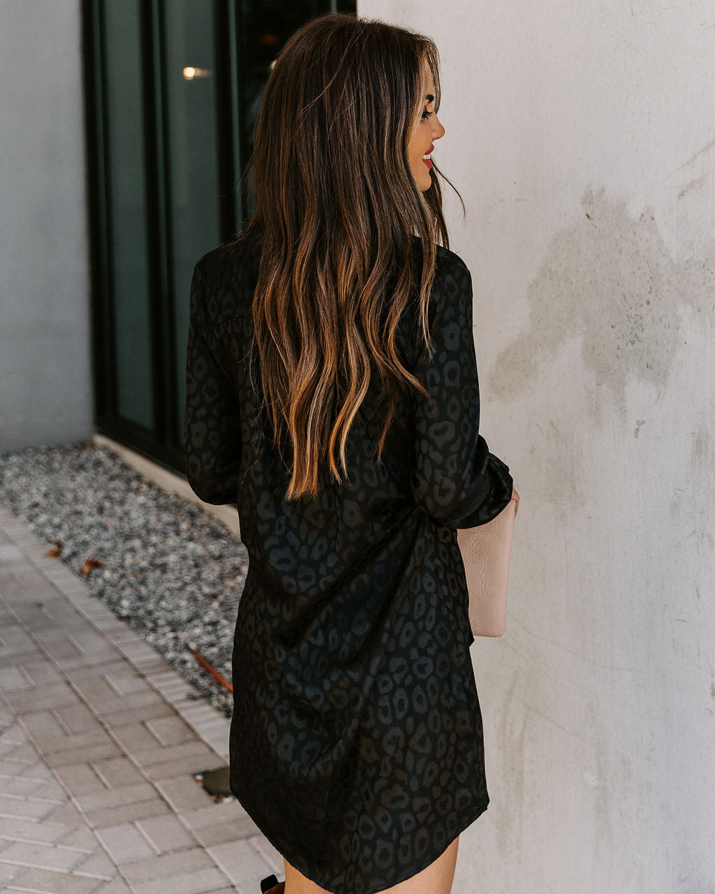 Our First Kiss Satin Embossed Leopard Tunic turns head with a black leopard embossed satin! This trendy piece features a plunging neckline with adjustable front tie and button closures. Detailed with long sleeves and functional button cuffs. Pair with knee high boots for the Fall/ Winter season. Styled with the On Demand Herringbone Chain Necklace. Virtue Coin Medallion Necklace. Stella Crossbody Envelope Zip Clutch. and Saint Slouch Boot.