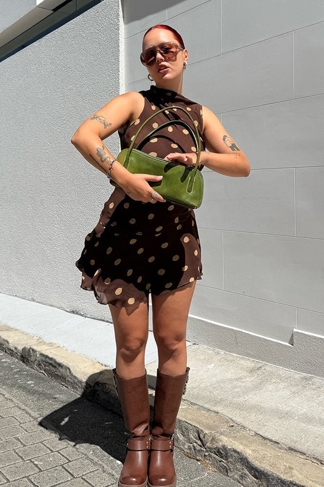Polka Dot Ruched Bodycon Mini Dress