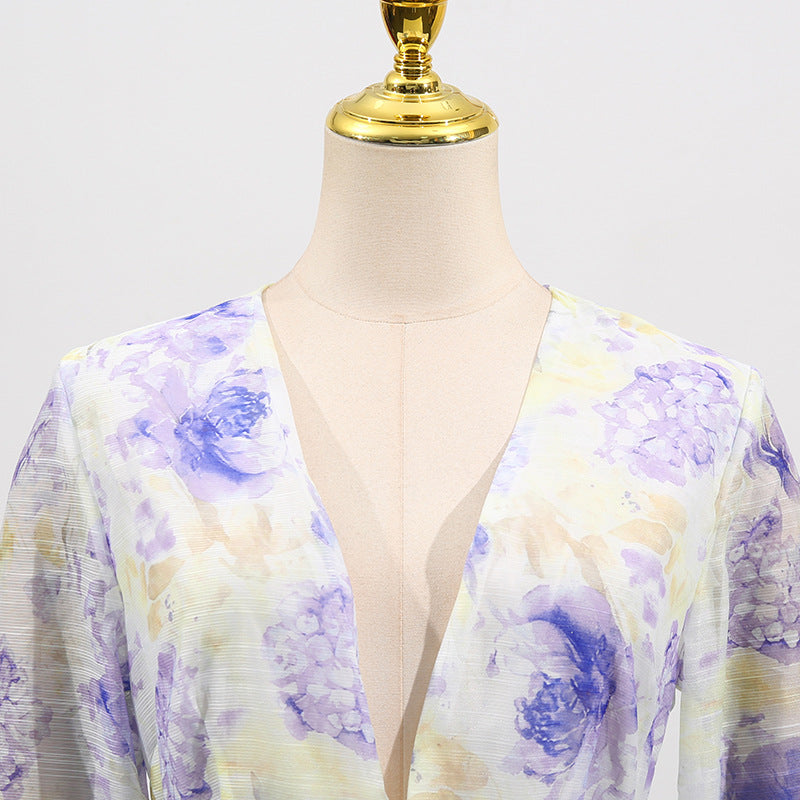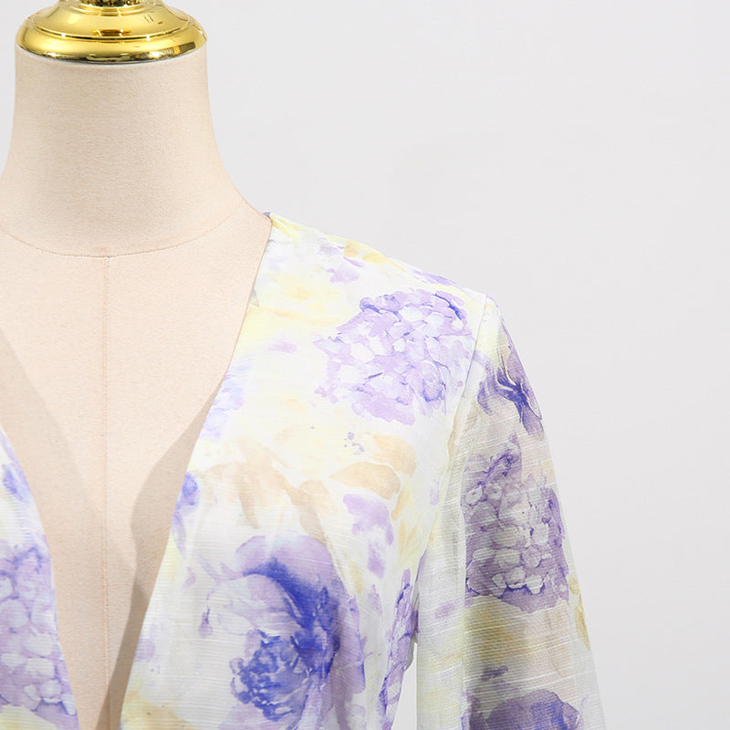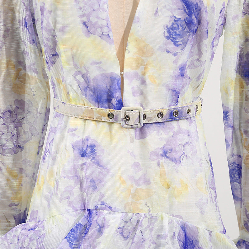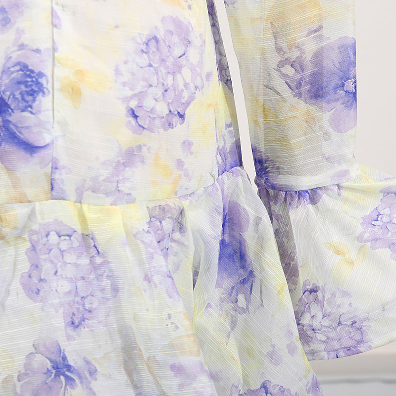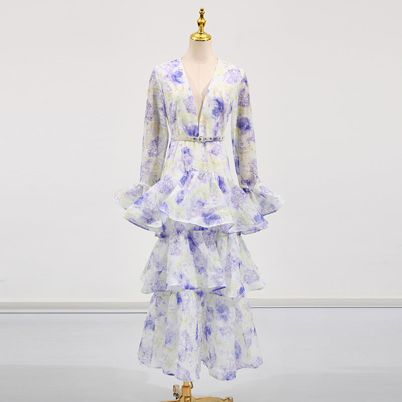 Floral Lace Trim Cake Dress – Summer Deep V-Neck Bell Sleeve Maxi Dress