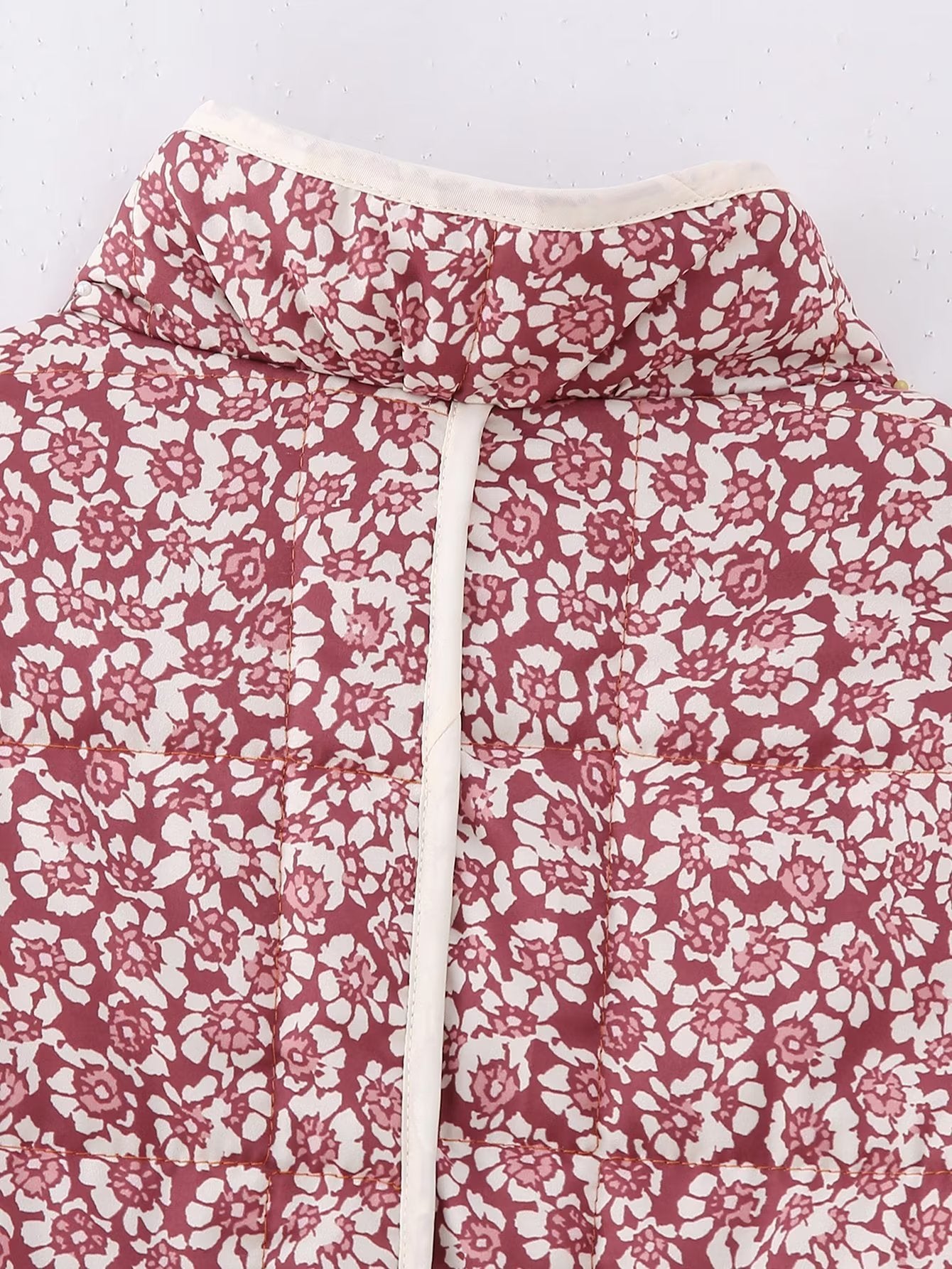 Floral Print Quilted Puffer Coat - Oversized Warm Winter Jacket