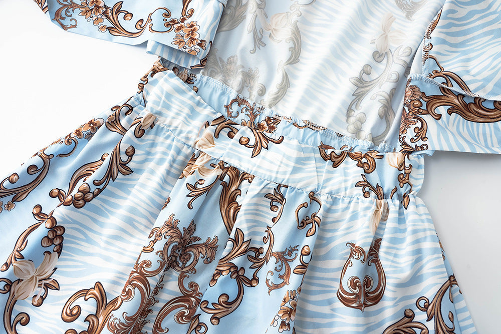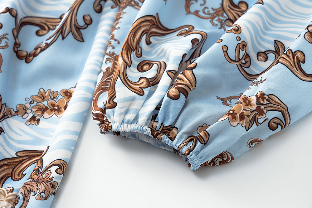 Floral Print V-Neck Long Sleeve Shorts Jumpsuit