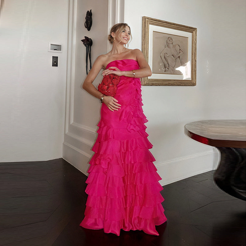 Off-Shoulder Ruffle Bustier Maxi Dress – Elegant & Feminine Summer Evening Gown for Women