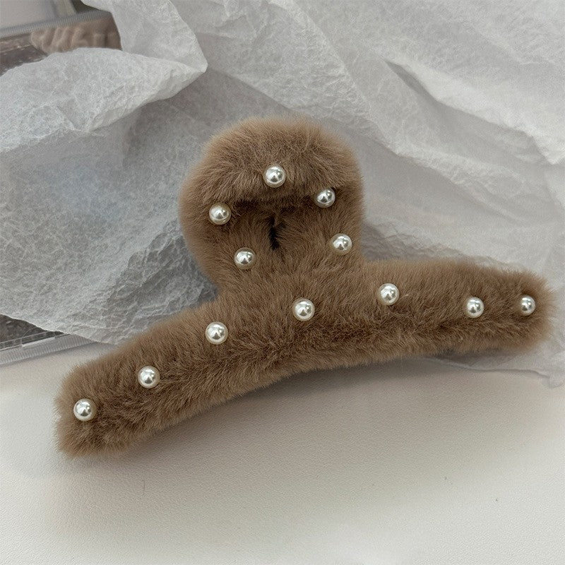 Furry Pearl Large Hair Claw Clip