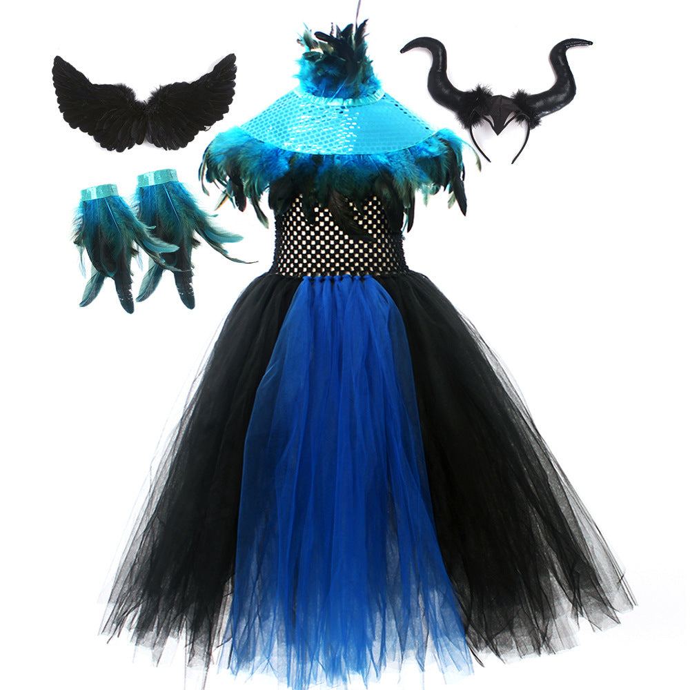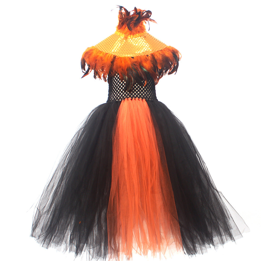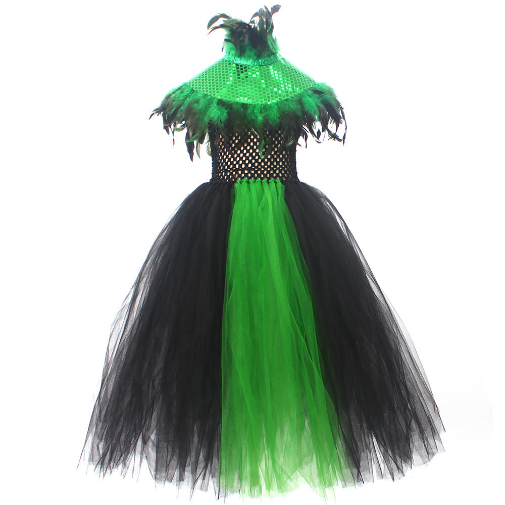 Halloween Glitter Feather Collar Witch Long Dress