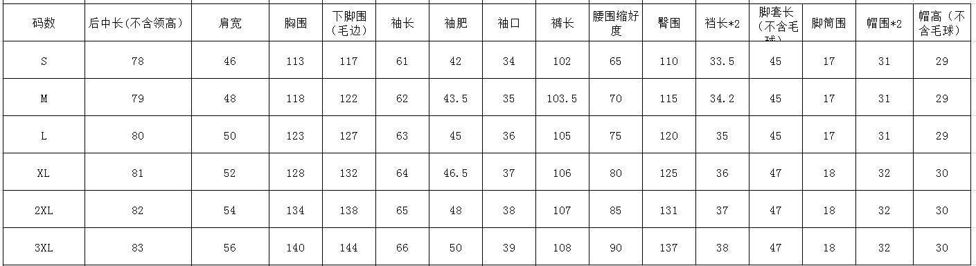 | 3XL | 140 | 55 | 83 | 33 | 137 | 54 | 107 | 42 |