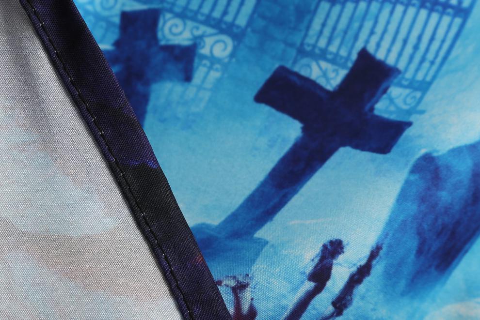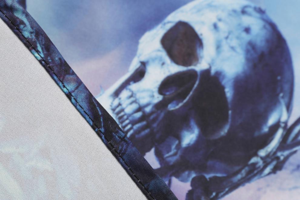 Design: All-over Halloween-themed print with contrast panels