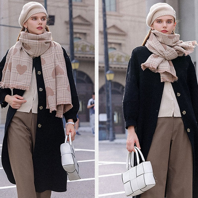 Heart Printed Plaid Tasseled Thick Warm Shawl Scarf
