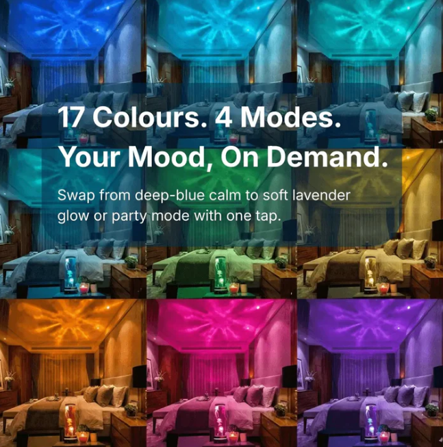 By syncing 16 spectrum-calibrated colors with silent hydro-dynamics, it eliminates the buzzing distractions of typical mood lights, transforming your bedroom into a weightless sanctuary where anxiety simply cannot breathe.