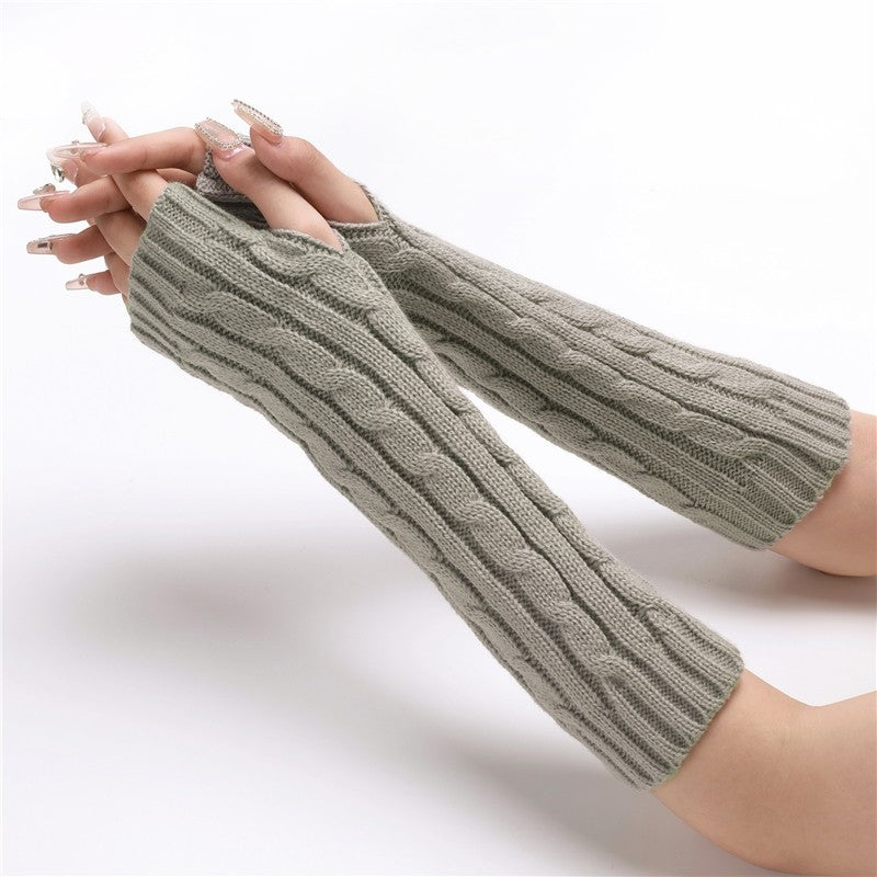 Knitted Twisted Half-Finger Arm Sleeves In Medium Length