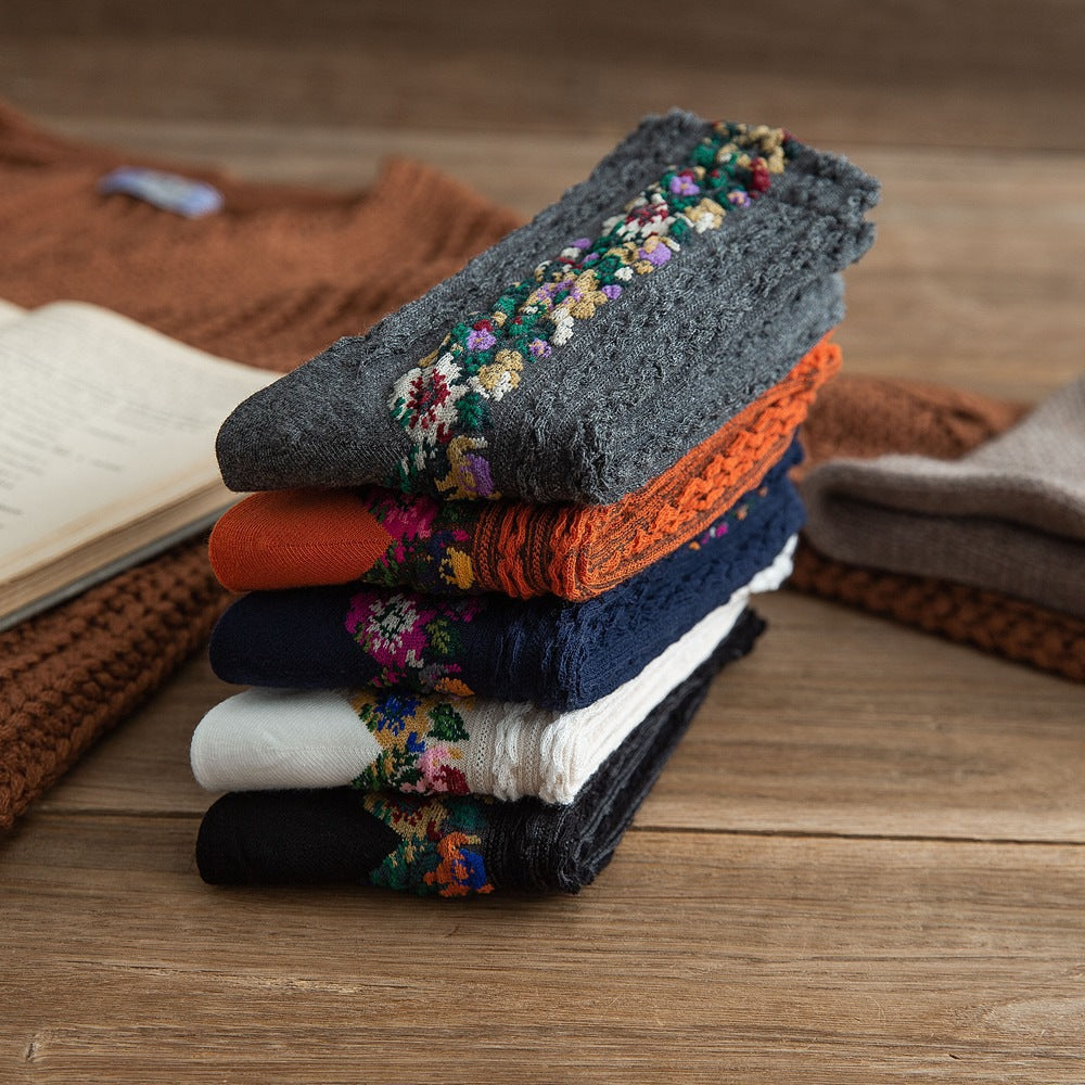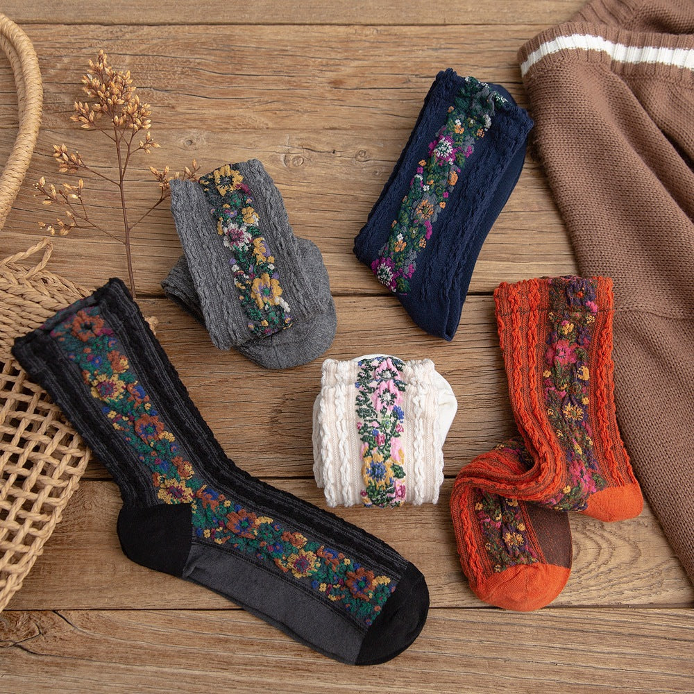Add a touch of elegance to your everyday wardrobe with our handmade embroidered floral socks.