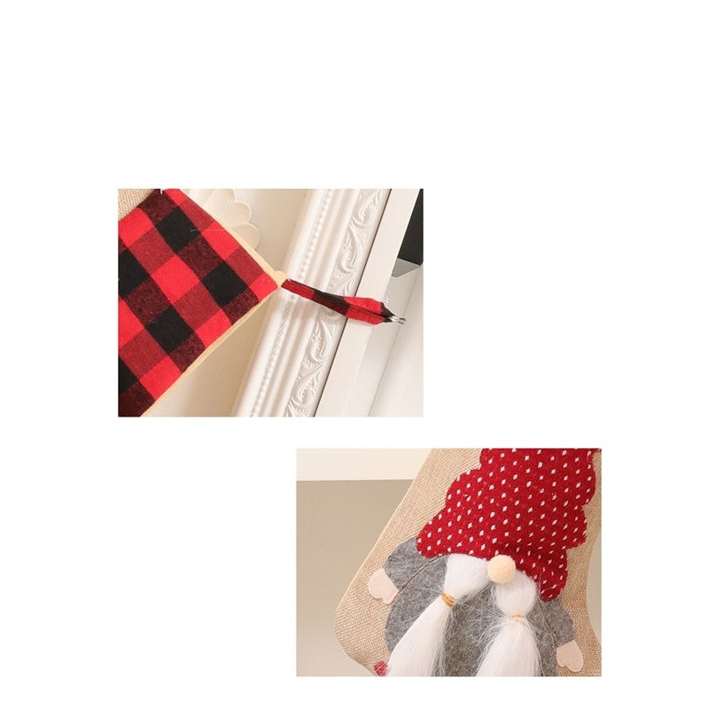 Linen Rudolph Plaid Sock Gift Bag Christmas Decoration