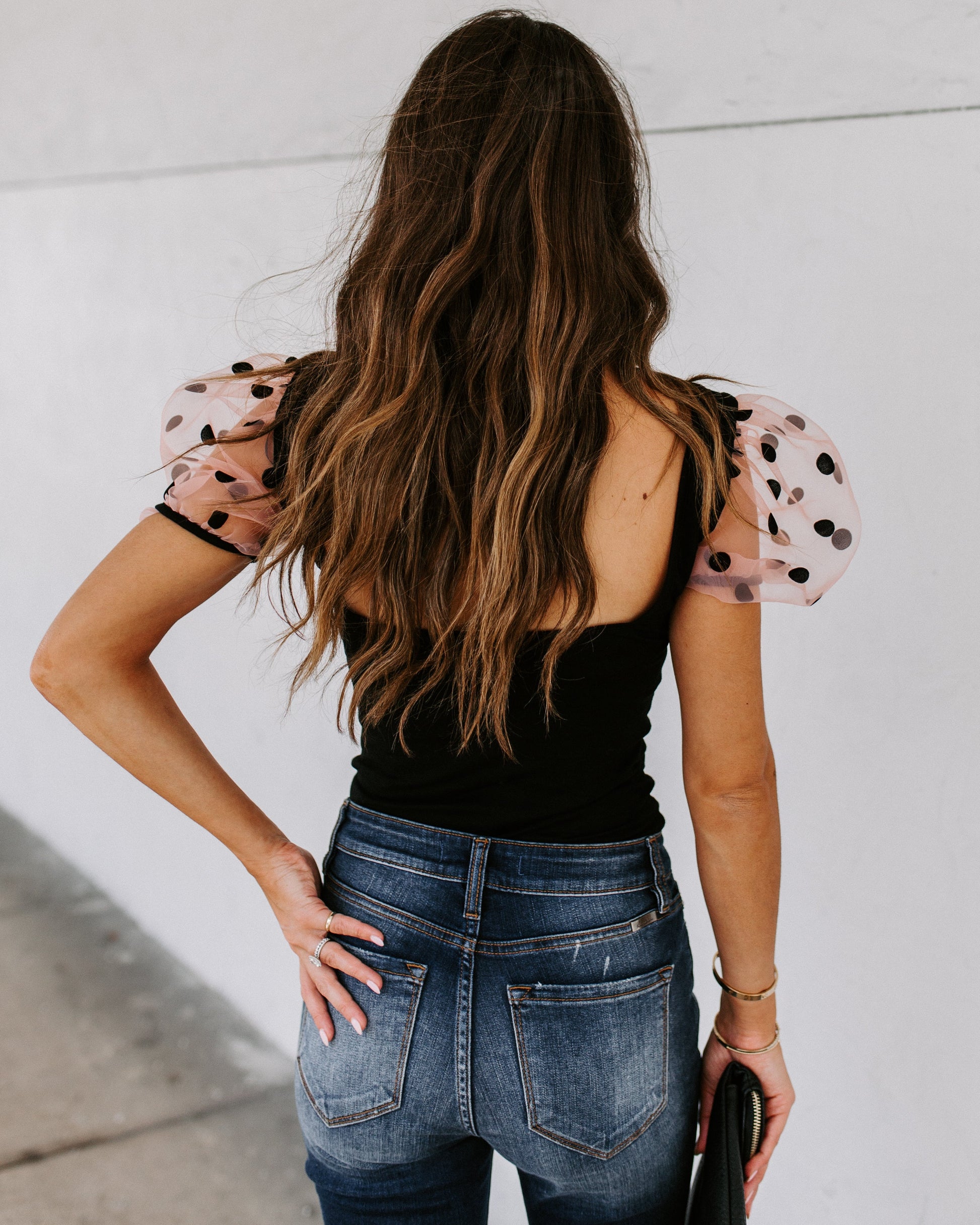 - Velvet Polka Dot Sleeve Detailing