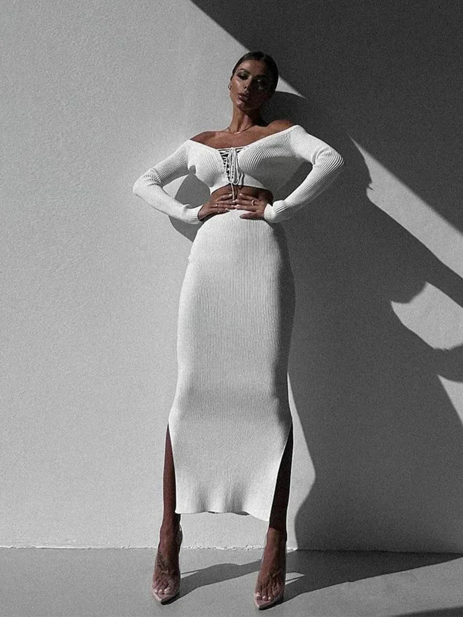 Plaid Knitted Maxi Dress