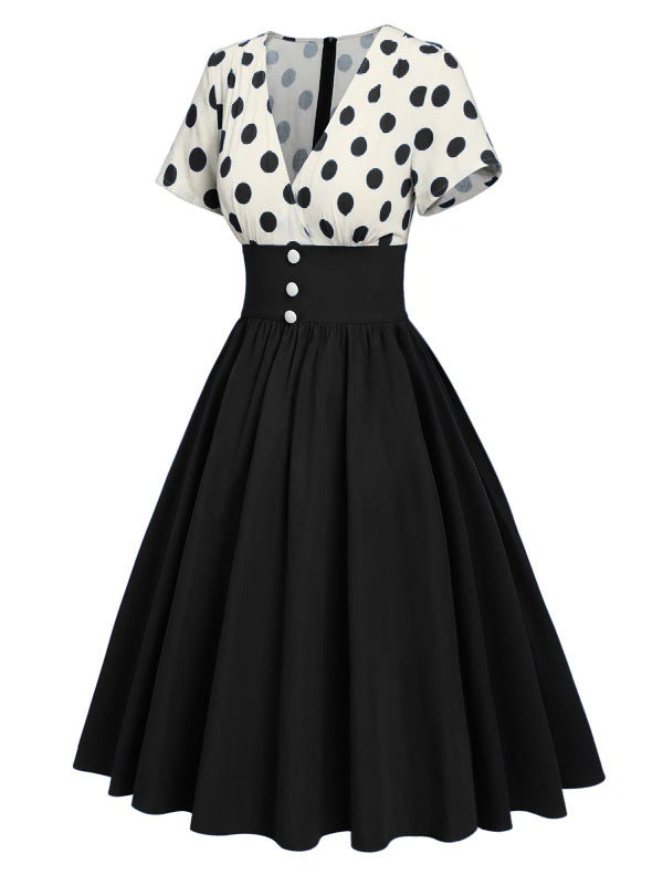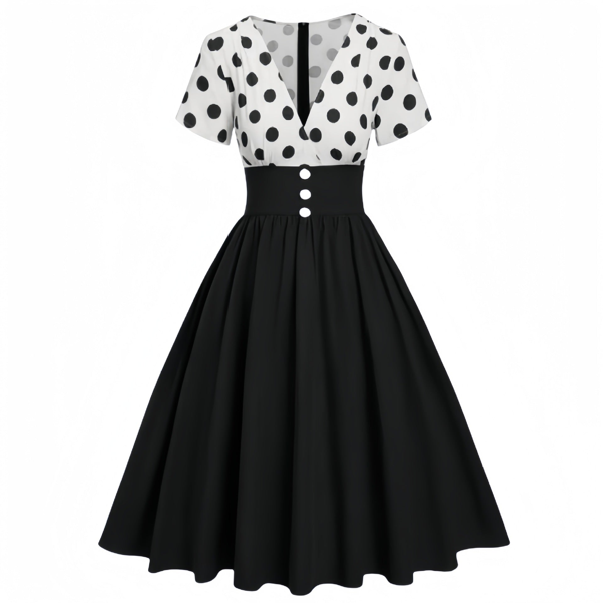 Embrace playful elegance with our Polka Dot Contrast Panel Dress. Designed to seamlessly transition from chic daytime outings to glamorous evening parties, this dress is a must-have staple in your modern wardrobe. The flattering fit and timeless polka dot print create a look that is both fashion-forward and effortlessly cool.