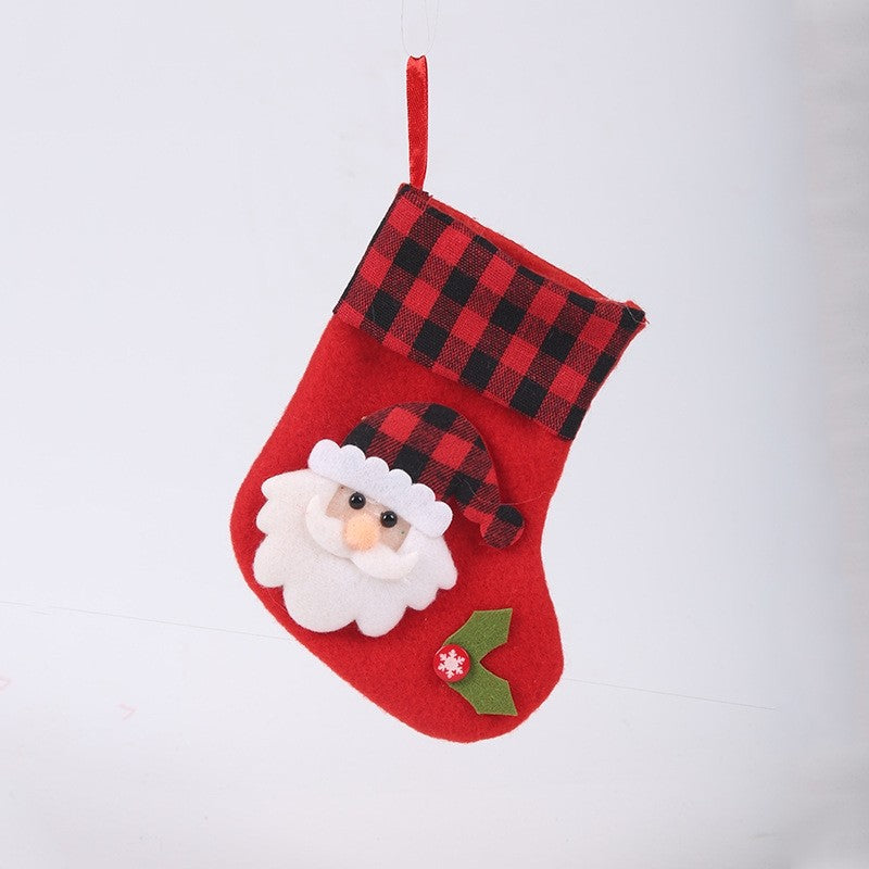 1. This Red Black Plaid Patchwork Cute Cartoon Christmas Socks Gift Bag is a festive option for gift giving and easy storage.
