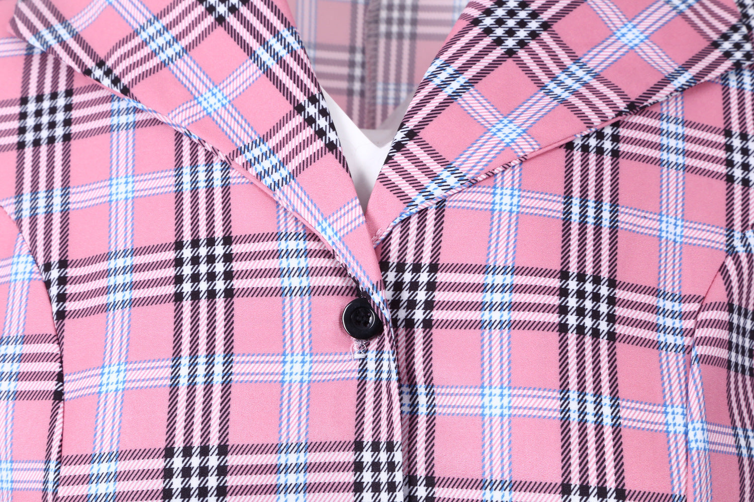 Vintage-Inspired Design: The classic plaid pattern and tailored blazer collar offer a chic, retro aesthetic that never goes out of style.