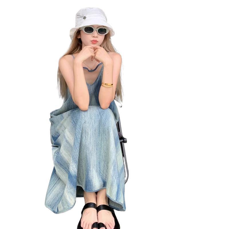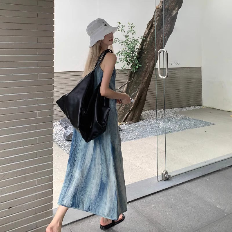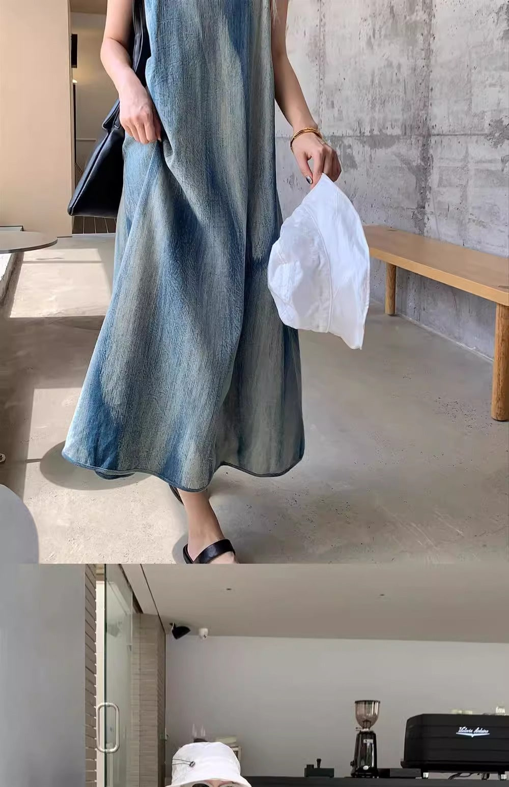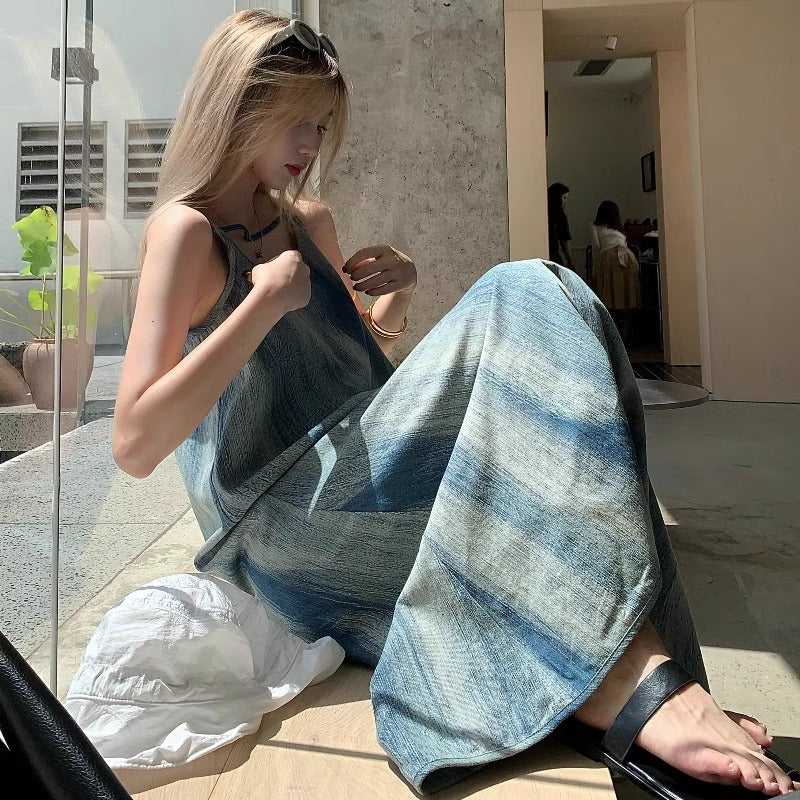 Retro Tie-Dye Strap Dress – Summer Loose Boho Beach Maxi Dress for Vacation
